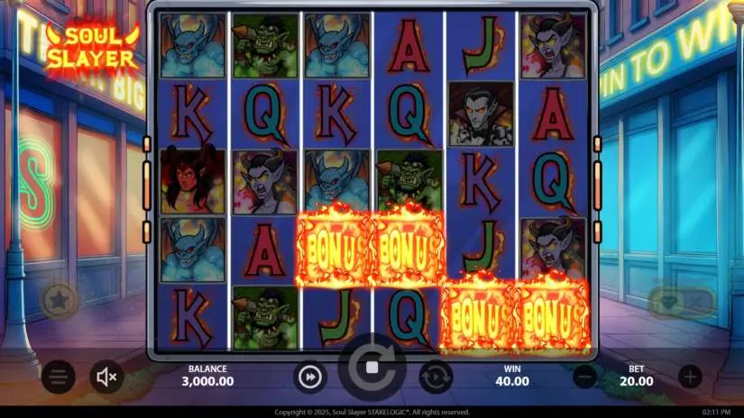 In the Soul Slayer online slot from Stakelogic, the forces of darkness are rising, and only one warrior stands in their way. As the Slayer, every spin is a battle. Form winning combinations to strike back, and when Demons appear, unleash your wrath: battle them and transform their symbols into Wilds or powerful Wild Multipliers. Activate the “Battle” feature and enter the Demon World, where every spin becomes a duel. Fight, win, and watch your victories grow ever greater. Only the strongest will survive. The theoretical minimum payback percentage (RTP) is 96.01%.
