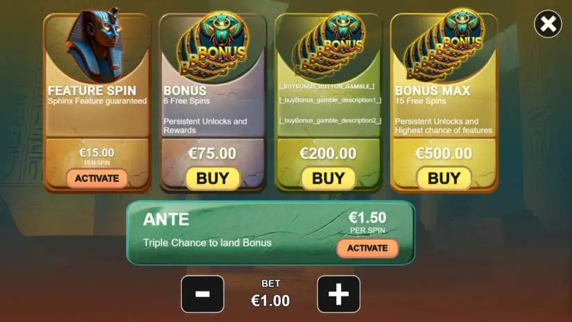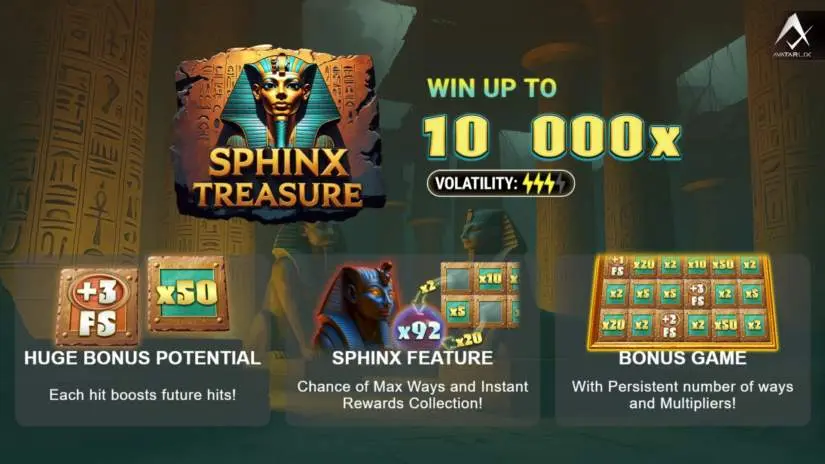 Definitely, our platform offers the opportunity to enjoy a demo version of Sphinx Treasure without any need for signing up. Moreover, any online casino that collaborates with Avatar UX would grant users unrestricted entry to the test mode, completely free of charge.