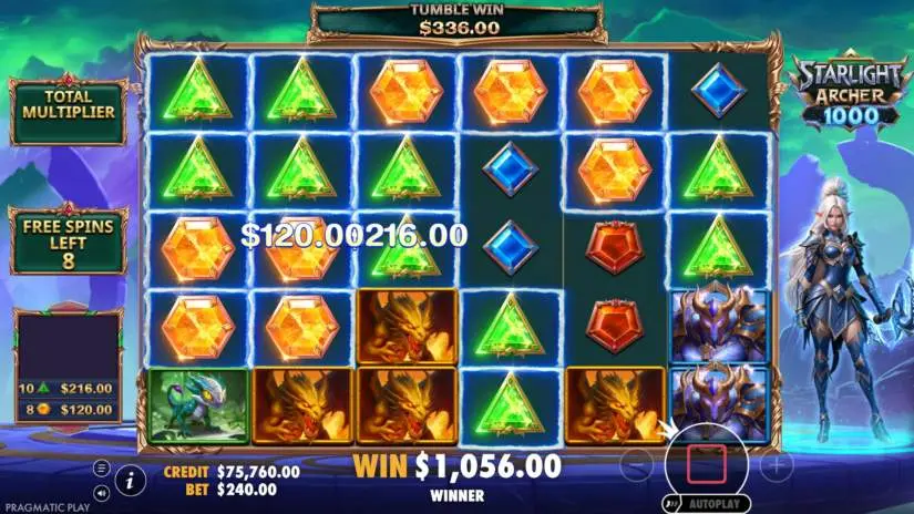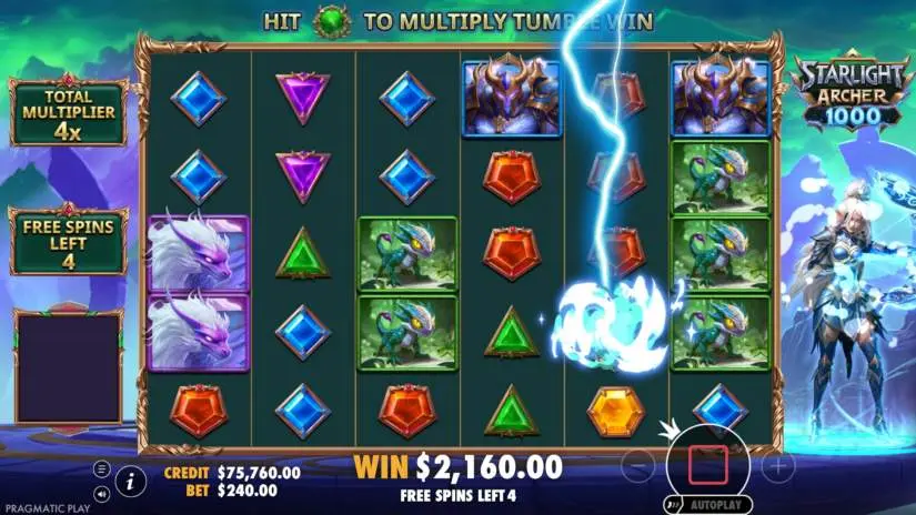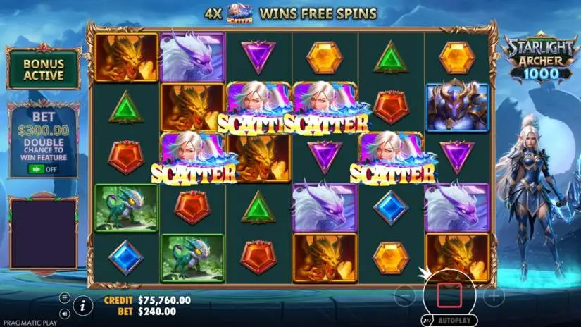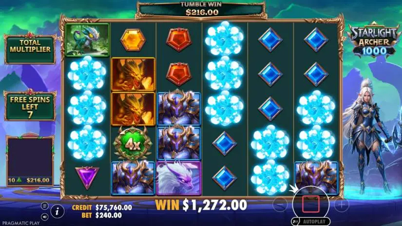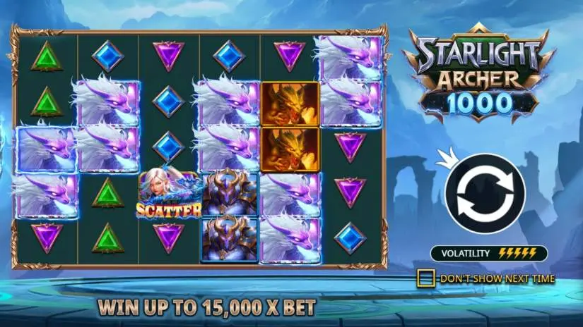 In Pragmatic Play’s Starlight Archer 1000, symbols pay out anywhere on the screen. The total number of matching symbols on the screen at the end of a spin determines the winning amount.