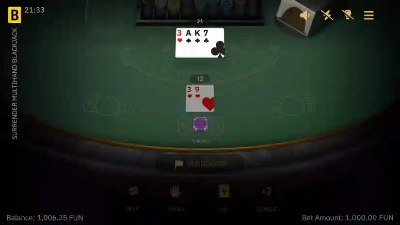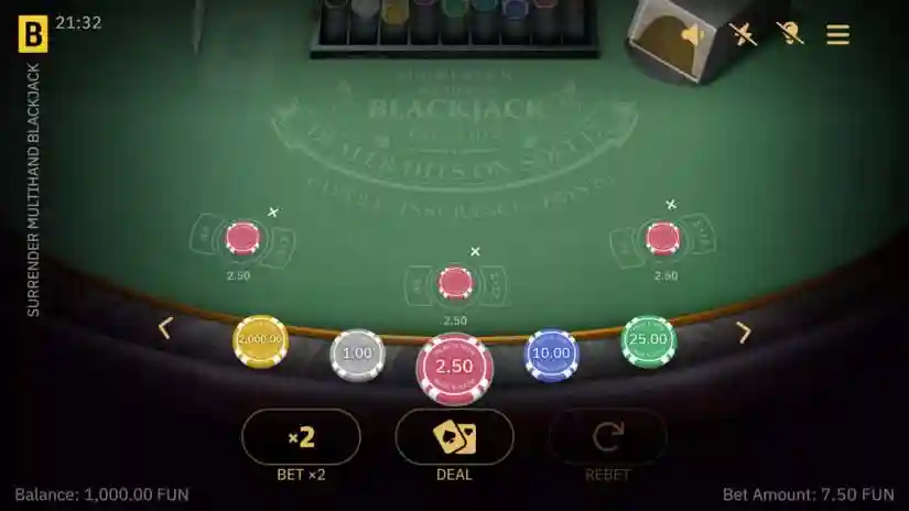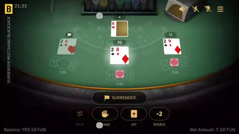 Definitely, our platform offers the opportunity to enjoy a demo version of Surrender Multihand Blackjack without any need for signing up. Moreover, any online casino that collaborates with BGaming would grant users unrestricted entry to the test mode, completely free of charge.
