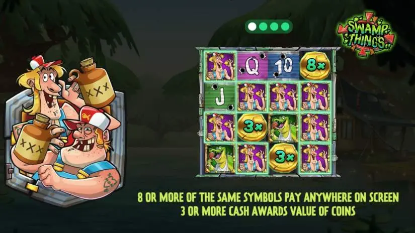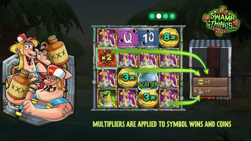 The maximum payout per game round in Swamp Things is 25,000 times the current base bet. When playing in Upgrade modes or using Bonus Purchases, the maximum payout per game round is 50,000 times the current base bet.