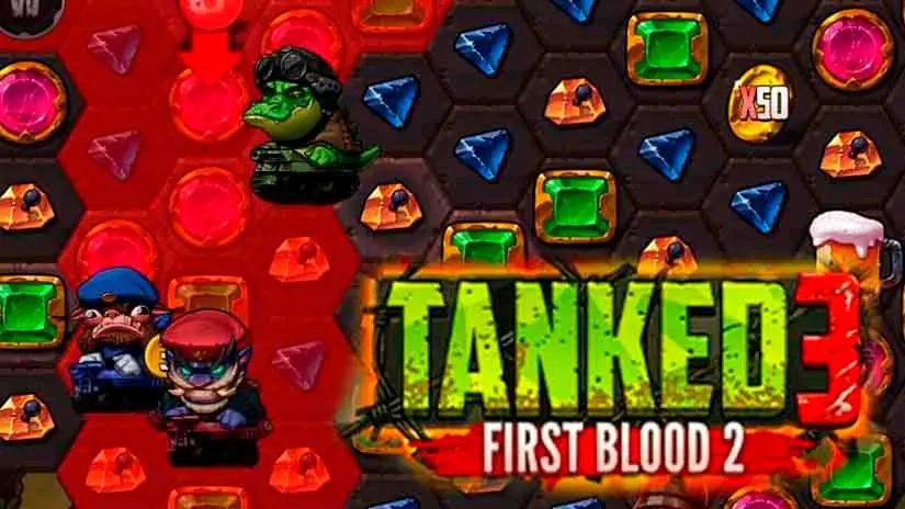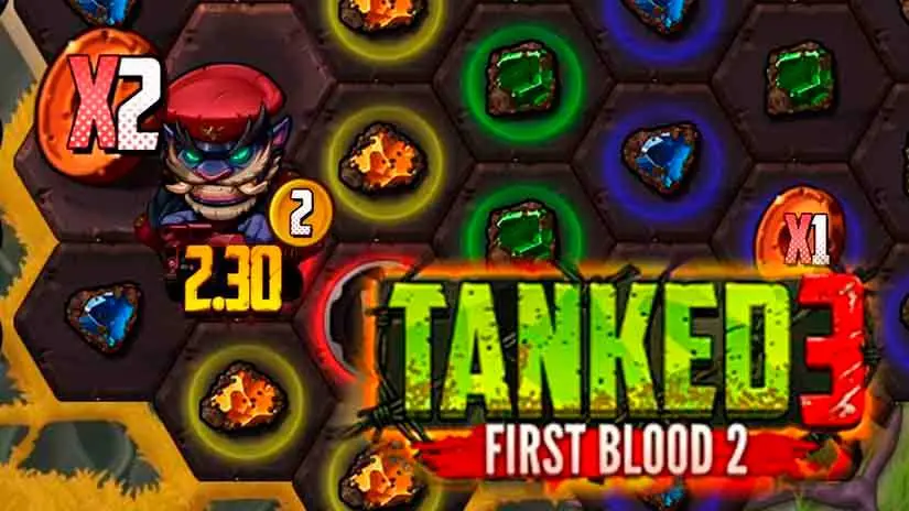 They are triggered when no characters can move and all possible tank boosters are activated. The bomb explodes in the specified direction. All payout symbols and character symbols disappear from the reels and the playing field expands in the direction of the bomb’s fall. If any symbol is removed by any of the above bombs, it will reappear on the reels when new symbols appear.