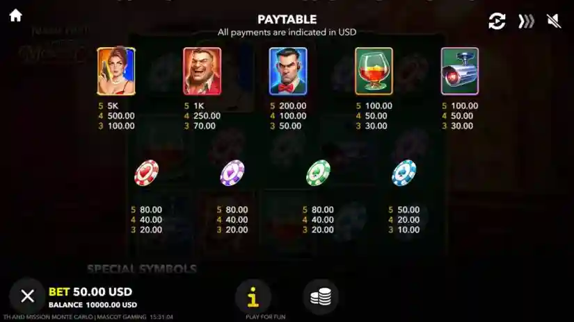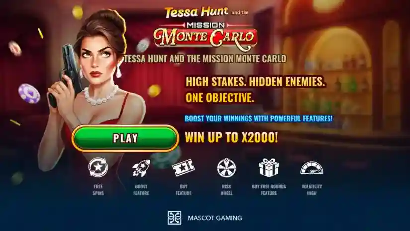 Tessa Hunt and the Mission Monte Carlo is a 5-reel, 3-row video slot from Mascot Gaming, offering 243 ways to win. The game begins with the main mode, where the total bet is set on each spin based on the selected amount. During the game, players can activate the Free Spins feature or enter Risk mode after any winning spin.