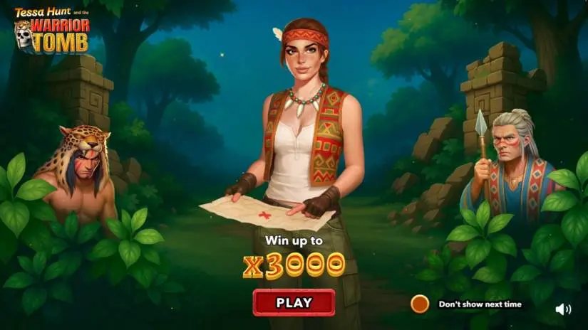 Tessa Hunt and the Warrior Tomb is a 5-reel, 15-payline video slot with payouts from left to right. The game begins with the base game, where the player’s bet is deducted on each spin, up to the player’s chosen amount. From the base game, players can access free spins or the gamble feature.