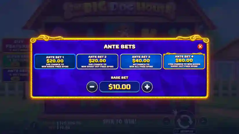 €/$0.20 per spin is a starting bet in the The Big Dog House