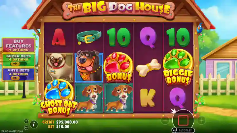The dog team returns to the big screen in Pragmatic Play’s The Big Dog House. All symbols pay from left to right on adjacent reels, starting with the leftmost reel.
