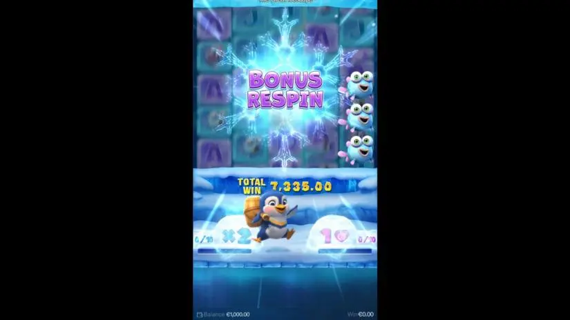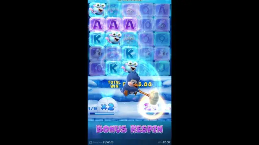 The Great Icescape by PG Soft is a 5-reel, 5-row video slot with respins and bonus respins with a multiplier. During the main spins, 12 blockers appear on the reels, and each winning symbol in a winning combination destroys one of the blockers. The Respins Bonus Feature is activated with 1 extra life and a x2 multiplier when all blockers are destroyed!