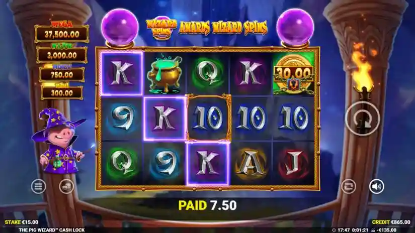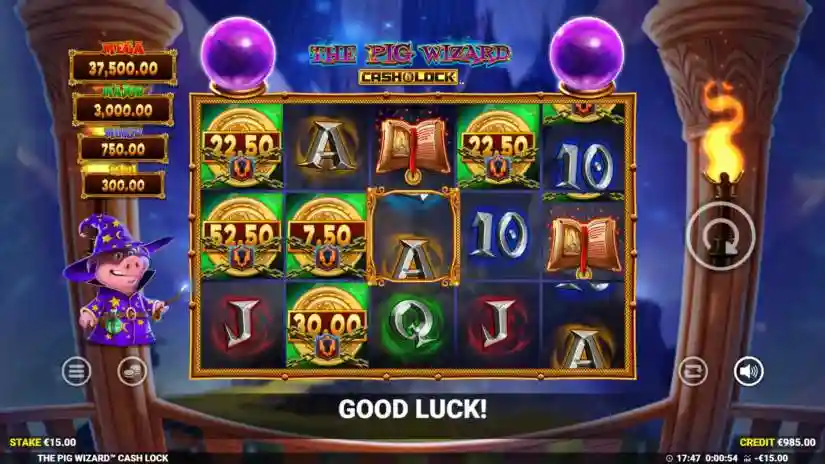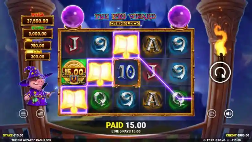 When the Pig Wizard symbol appears on the screen, it will hit one or both crystal balls above the reels. Activating the crystal balls and opening the ‘wizard spins’ awards a bonus.
