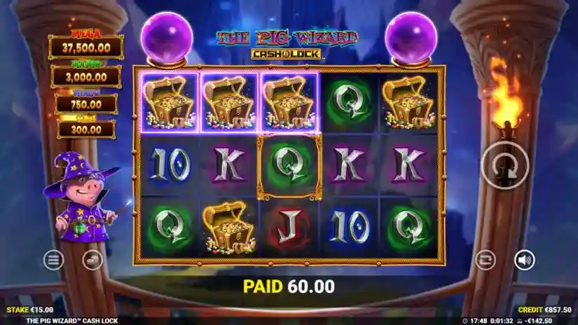A pig wizard symbol appearing on the screen can land on one or both crystal balls above the reels. Each time it lands on a crystal ball, there is a chance that the corresponding crystal ball will increase or reveal a reward.