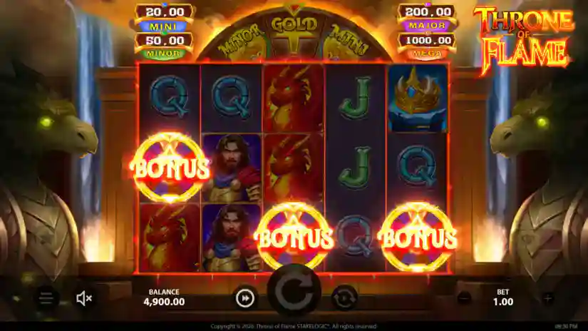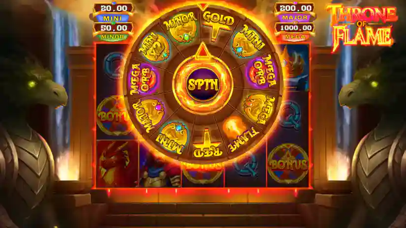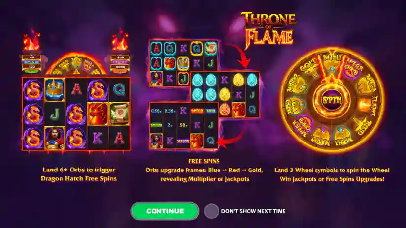 Players in Stakelogic’s Throne of Flame journey to Dragon Mountain, a mystical peak where the ancient Fire Dragon guards its treasures—a cache of glowing Orbs and enchanted Dragon Eggs hidden deep within the stone. Only the bravest dare approach the Dragon’s lair. When the creature awakens, it unleashes its fiery power to reveal the eggs’ true value. Those who manage to tame the Dragon’s fire and claim its most valuable rewards can win the grand jackpot and become the ultimate Egg Dragon Master, ruling over the mountain’s fiery riches.