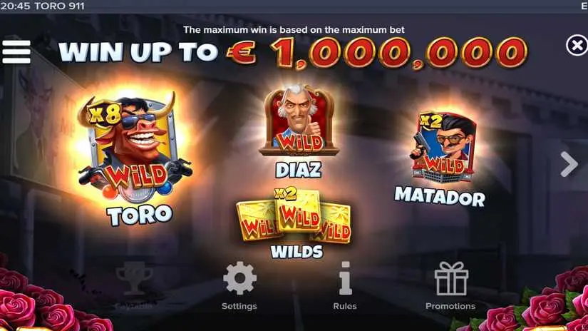 Wins in Toro 911 are displayed in the player’s currency or coins. Players can change these settings in the game’s settings. Wins begin on the leftmost reel and are paid from left to right on adjacent reels only. Gaps between reels are not counted. Only the longest line on each active payline is paid.