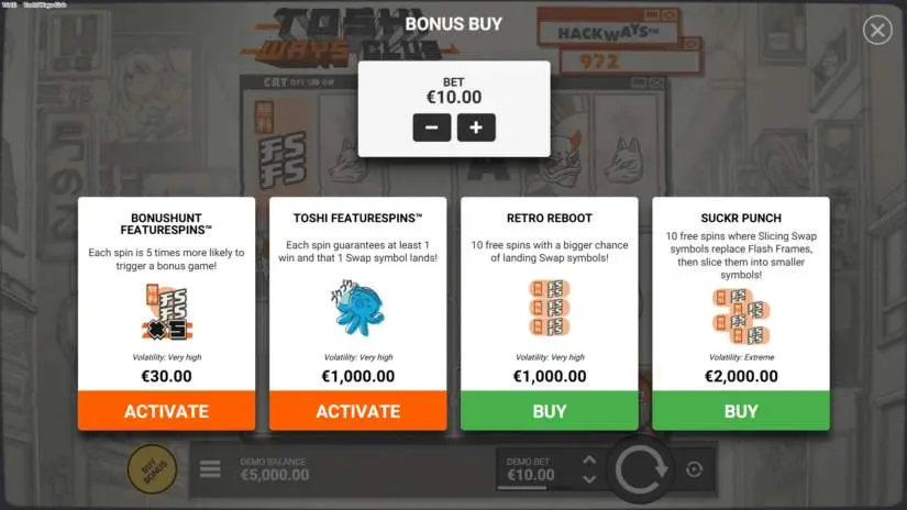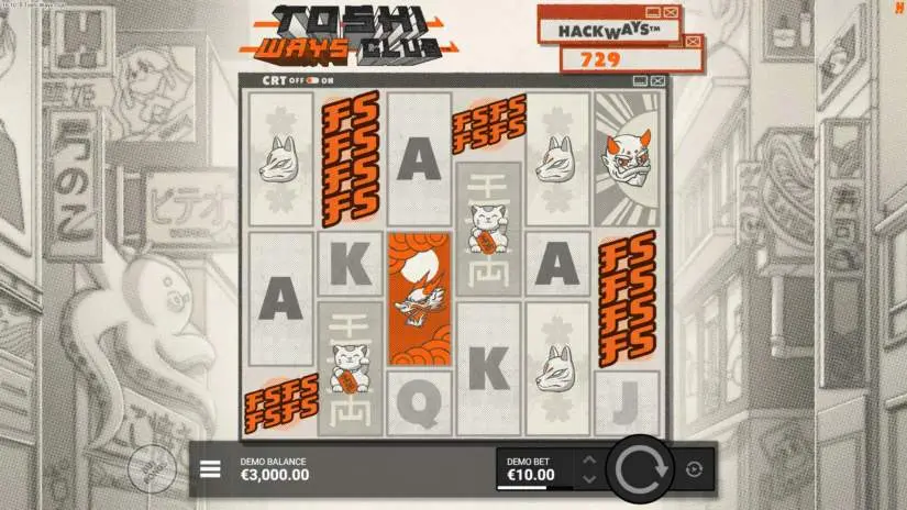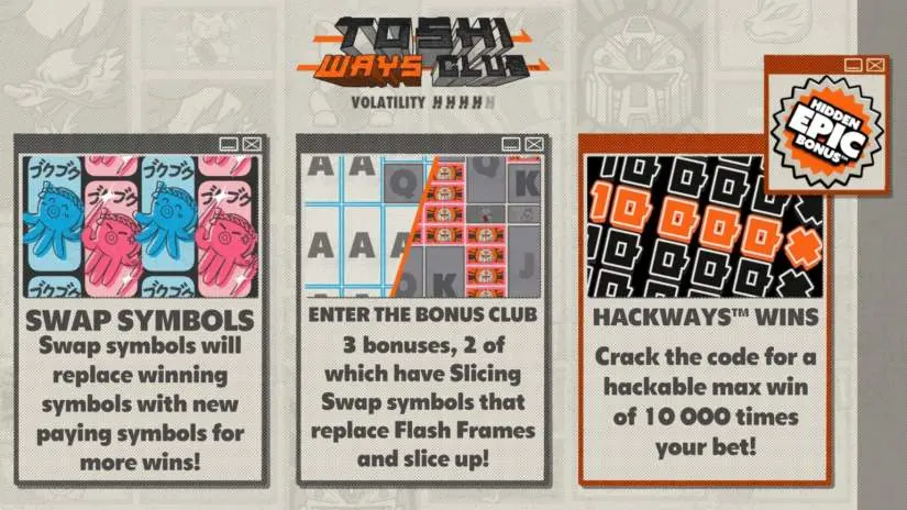 Welcome to Toshi Ways Club, a 6-reel, 10-row slot from Hacksaw Gaming featuring the Ways to Win mechanic and a maximum win of 10,000x your bet, available in any game mode!
