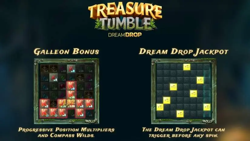 The maximum win in Treasure Tumble Dream Drop is 10,000 times the regular bet (excluding the Dream Drop jackpot). If the win exceeds this amount, the round stops, and the player receives a win equal to 10,000 times the regular bet.