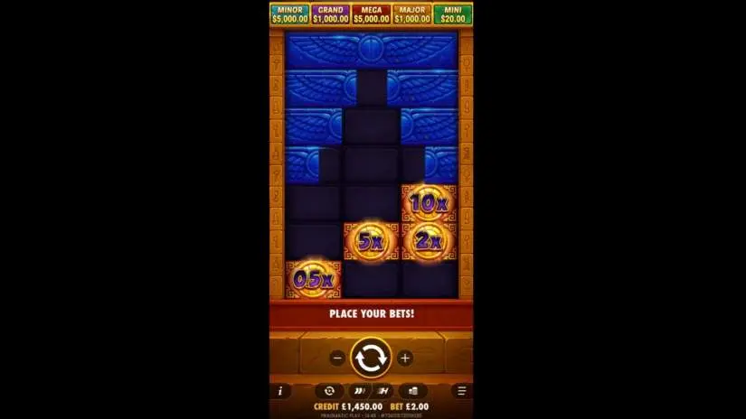 The maximum win in Tut’s Treasure Tower is capped at 5000x the bet. If the total win for a round reaches 5000x the bet, the round ends immediately, the winnings are awarded up to the set limit, and all remaining features are cancelled.