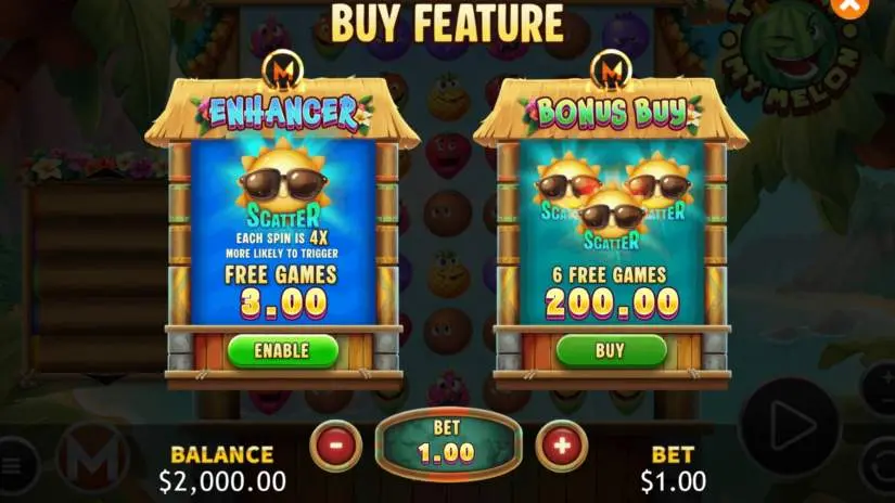 Free games are activated by landing three Scatter symbols. Six free games are played at the start of the game. During free games, any watermelon multiplier is carried over to all free games and can continue to increase.