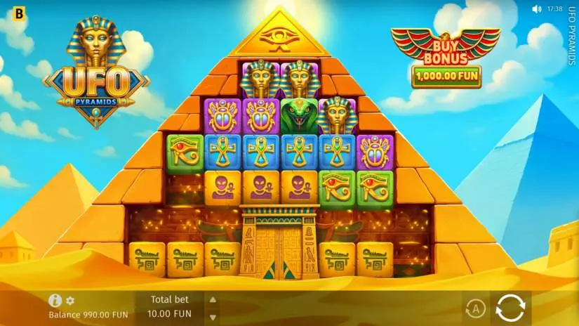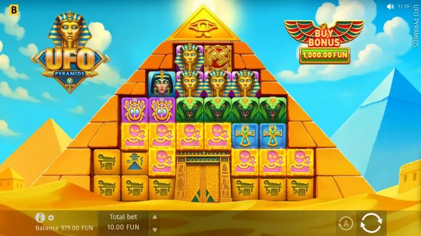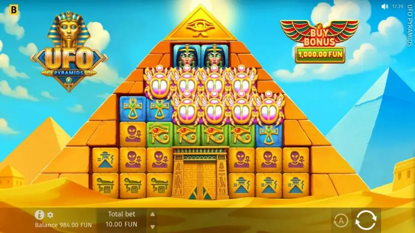Solve the mystery of the unexplored pyramids, and all the treasures will be yours in UFO Pyramids from BGaming! Don’t be afraid to peek inside—you’ll see a multitude of ancient symbols. As the reels fill, more and more symbols will appear from above, and the more matching symbols you land in a single spin, the higher your winnings. Look out for Scatter and Multiplier symbols. If you’re lucky enough to find at least four Scatters, you’ll have a chance to play the Free Spins round, where multipliers accumulate. Start playing and see for yourself how many treasures are hidden in the ancient pyramids!