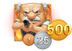 If the Uncle Profit symbol lands in the base game, there is a chance that the Gnome Shooting Gallery feature will be triggered. When triggered, the player is awarded a Bronze prize, which they can collect or gamble. If Collect is selected, a Bronze prize will be awarded. If Gamble is selected, a mini-game will begin, featuring increasingly valuable prizes, which the player can collect at any time. Whenever a prize is not collected, there is a risk that the mini-game will end without awarding any prize.