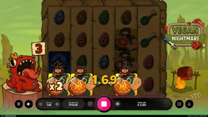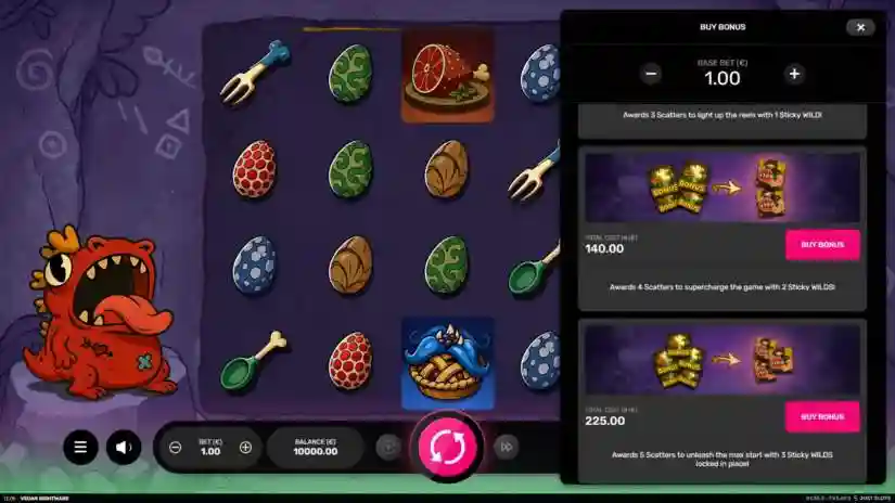 The maximum win in Vegan Nightmare is capped at 10,000 times the base bet. If the total win for a round reaches this amount, the round ends.