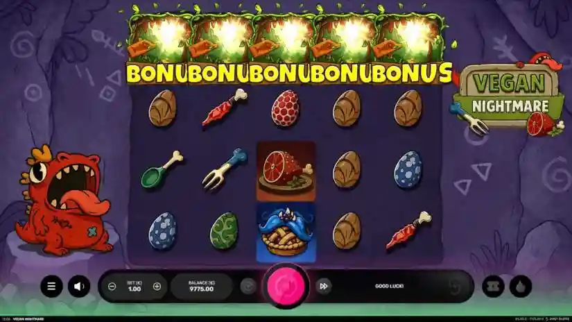 VEGAN NIGHTMARE is a 5-reel, 4-row, 20-payline video slot from ust Slots featuring multiplier WILD symbols and a Free Spins feature with sticky multiplier WILD symbols.