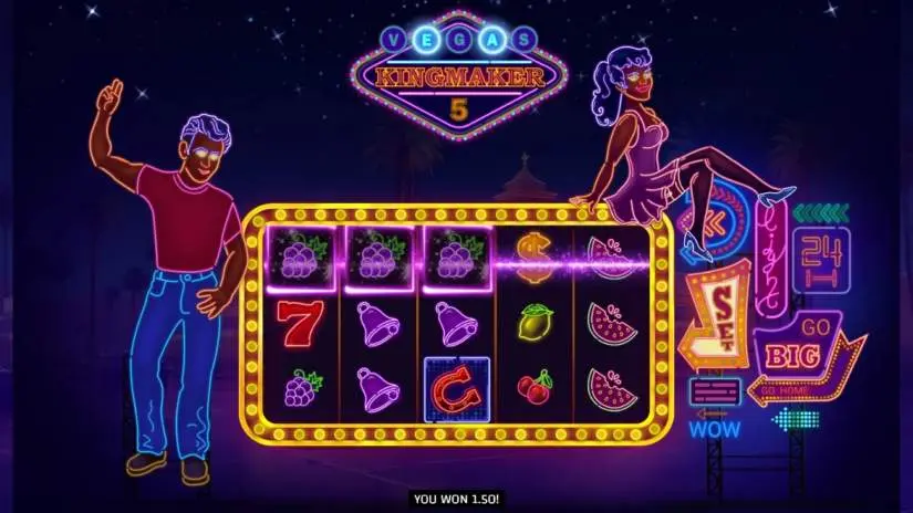 Vegas Kingmaker 5 by GameArt is a 5×3 reel slot with 5 paylines. Features include expanding wild symbols and scatter payouts.