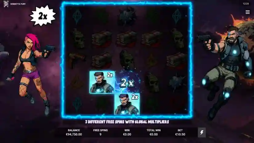 Depending on the position of the Vandal symbols on the reels, a rectangular battle zone is formed. All symbols within this zone become identical. Any symbol except the Vandal Wild itself can be selected as a substitute. Only one feature can be activated per spin.