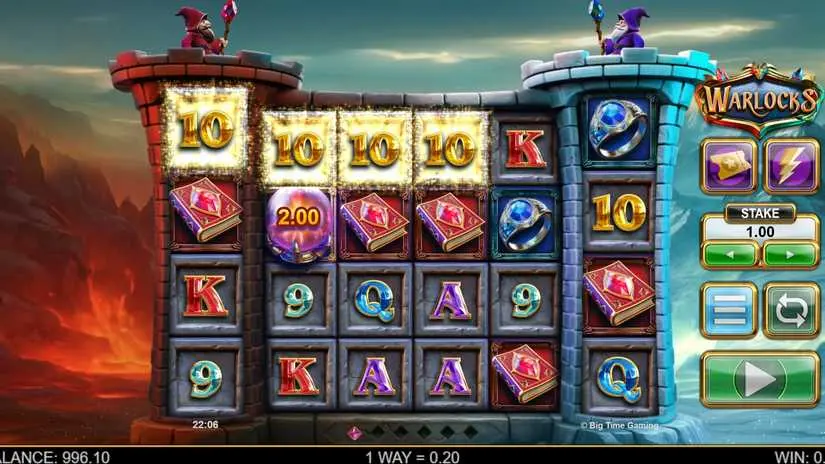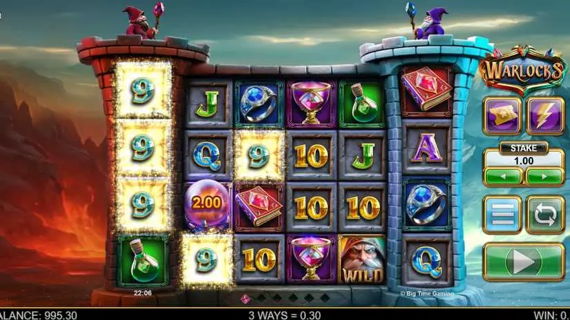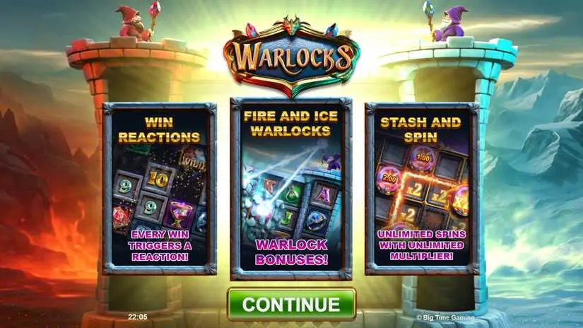 Warlocks is a 6-reel, 4096-way slot from Big Time Gaming featuring a Collect and Spin feature, unlimited spins and an unlimited multiplier.