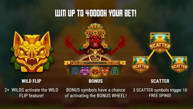 BONUS symbols can also enhance the god of death, MICTLANTECUHTLI. Although he looks ferocious and terrifying, the god of death has no effect on the gameplay and is purely cosmetic.