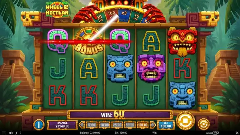 The Wheel of Mictlan game has 10 win lines, with wins awarded for adjacent symbol combinations from left to right. Winning combinations begin with the leftmost reel. Only the highest winning combination per symbol is paid. All wins are multiplied by the bet placed per line.
