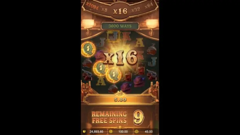Wild Bounty Showdown by PG Soft is a 6-reel video slot (3 rows on reels 1 and 6, 4 rows on reels 2 and 5, 5 rows on reels 3 and 4) with symbols in a gold frame and an increasing multiplier. Activate the Free Spins feature by collecting 3 Scatter symbols. Each Free Spin starts with a x8 win multiplier! Plus, your win multiplier is doubled if one or more winning symbols land on the reels during any Free Spin!