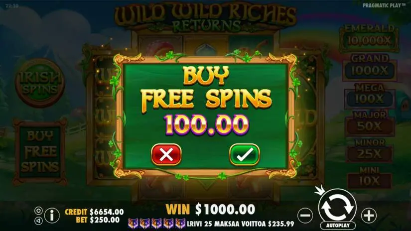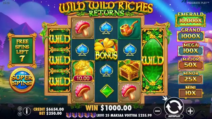 All symbols in Pragmatic Play’s Wild Wild Riches Returns slot pay from left to right on adjacent reels, starting with the leftmost reel.