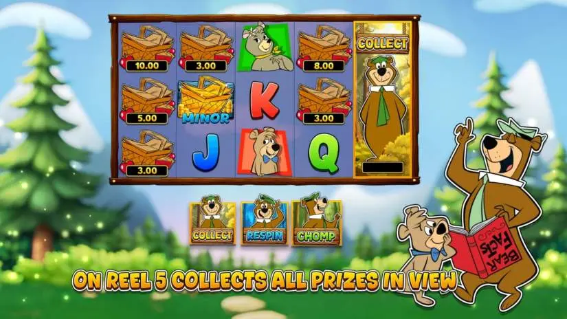 Wild symbols in Yogi Bear by Blueprint Gaming substitute for all symbols except the Bonus Scatter, Collect Scatter and Cash Prize symbols. Wild symbols can only appear on reels 2, 3, 4 and 5.