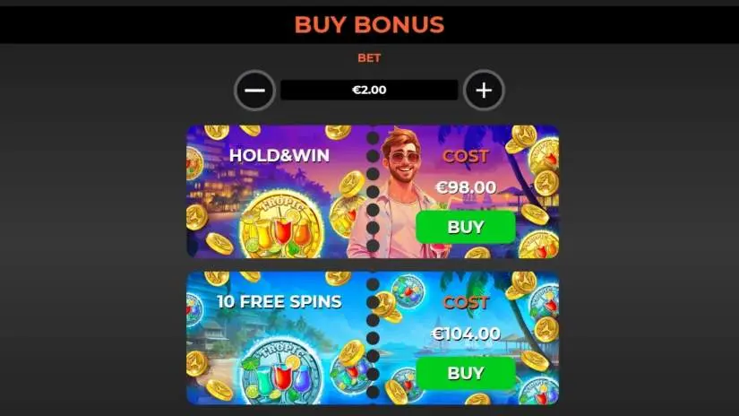 If at least six Sea Breeze Scatter symbols appear on the reels during a single spin in the main game, or if Sea Breeze and Sunset Vortex Scatter symbols appear during Free Spins, the HOLD & WIN FEATURE is activated. Players receive three re-spins, and all reel positions without Scatter symbols remain empty. Triggering Scatters become fixed. Each time a new Scatter symbol lands on an empty position, the re-spin counter resets to 3. Each Sea Breeze and Sunset Vortex Scatter symbol awards a cash prize of 1x, 2x, 3x, 4x, 5x, 10x, 15x, 20x, 25x, 30x, 50x, or 500x the bet. All wins are awarded at the end of the feature. Filling the reels completely also awards a SPECIAL PRIZE of 5000x the bet. The “HOLD AND WIN” feature can be activated in both the Main Game and the Free Spins game.