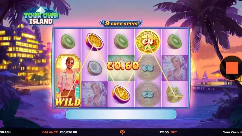 The maximum win in Your Own Island is 6,000 times the bet. When the maximum win exceeds this amount, free spins end, and a win of 6,000 times the bet is awarded. The game round ends when the maximum win is reached. This rule applies to any additional free spins or features.