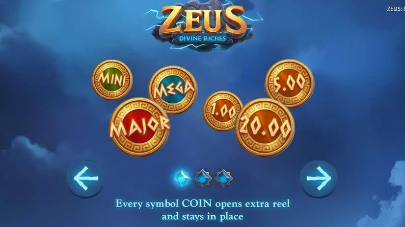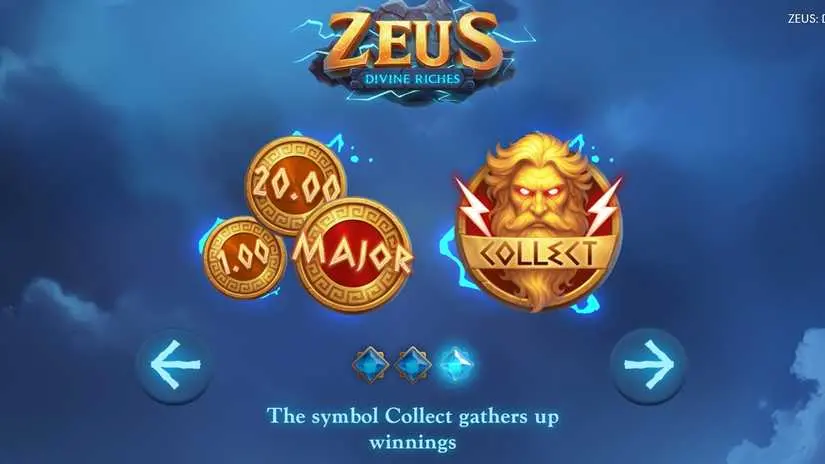 Zeus: Divine Riches by GameBeat is a 5-reel, 50-payline slot with payouts from left to right.