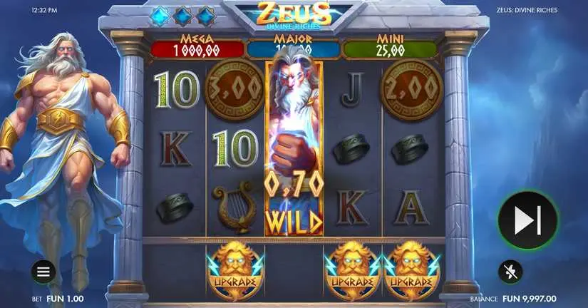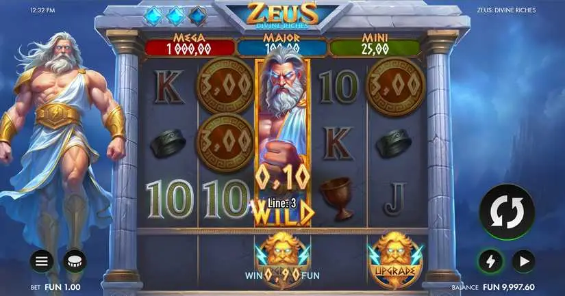 The maximum win amount in the Zeus Divine Riches game is limited to x 1500 bet. At the current rate, the maximum win will be FUN 1,500.00