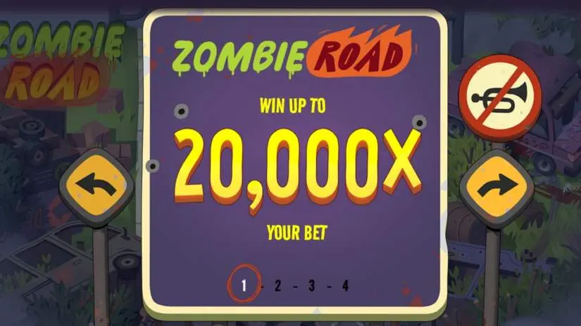 The maximum winning amount in the Zombie Road game is 20,000x bet.