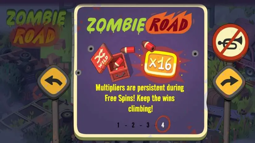 With “win-all-ways,” Zombie Road has no fixed paylines—symbols only need to land on adjacent reels to form a winning combination. The payout for each combination is calculated based on the longest combination from left to right.